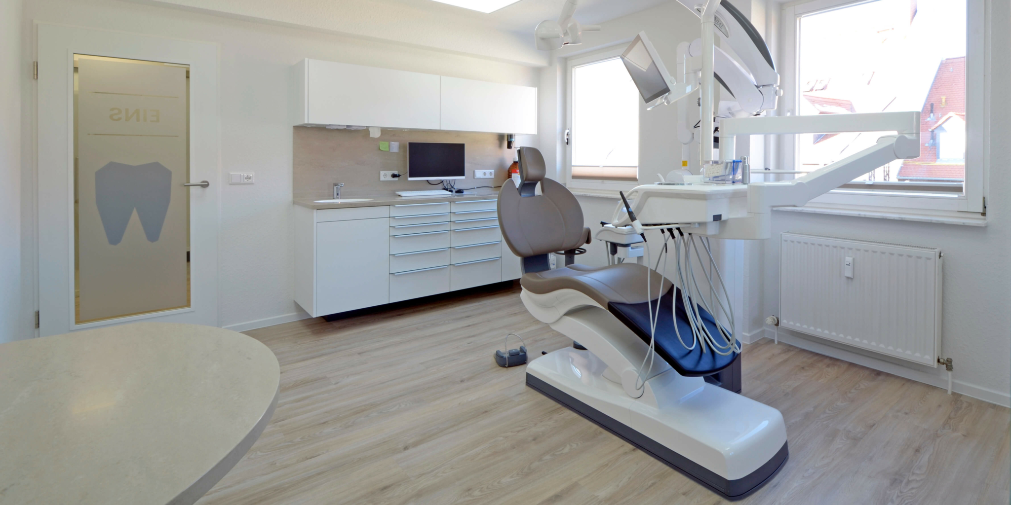 - Installation einer modernen LED-Praxisbeleuchtung mit Deckenbildern über den Behandlungseinheiten für eine angenehme Atmosphäre
